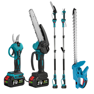 Home NewBeny Akku-Heckenschere (20 Zoll), Kettensäge (8 Zoll), Gartenschere (30mm) und Teleskopstange (2m) – Kombi-Set [2 Akkus und Ladegerät enthalten]