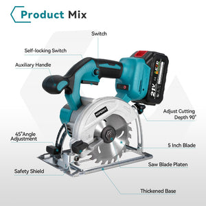 NewBeny 5 Zoll Akku-Kreissäge mit bürstenlosem Motor für Makita 18V Akku