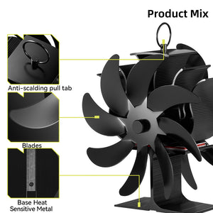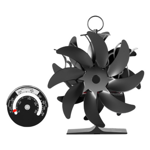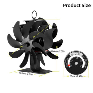 NewBeny 16-Blade Dual-Sided Fireplace Fan with Thermometer Heat Powered Log Burner Fan