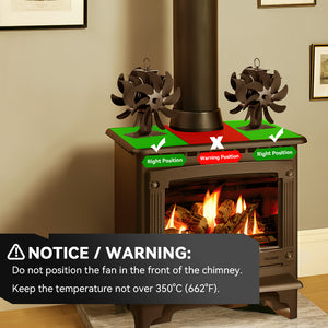 Dual-Sided Efficiency: Featuring a unique dual-sided design, this stove fan enhances airflow in two directions, ensuring even heat distribution across your room. With 16 durable aluminum blades, it delivers superior performance for larger spaces.