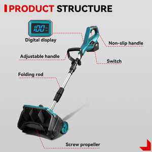 NewBeny Brushless Cordless Snow Remover Foldable & Wheeled, 3-Direction Snow Discharge [2 Batteries and a Charger Included]
