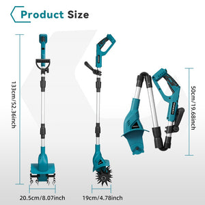 Our 3-fold foldable cordless cultivator collapses in seconds, fitting into car trunks, sheds, or small garages with ease. Perfect for homeowners with limited storage space or balcony gardens.