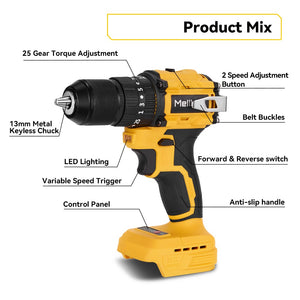 From flat drilling to impact driving and screwing, this powerful cordless drill features 25+3 torque settings and dual speed gears — making it a must-have for furniture building, cabinetry, and structural work.
