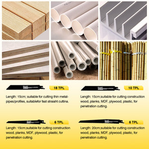 The 6-inch circular saw reaches up to 7200 RPM with a max cutting depth of 55mm, while the reciprocating saw handles up to 200mm wood cuts at blazing 12,000 SPM. Whether it’s fine precision or aggressive demolition, you’re fully equipped.