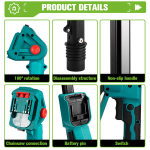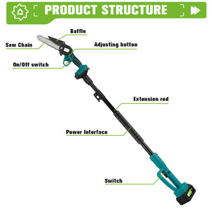 NewBeny Sierra de Poste Inalámbrica de 6 Pulgadas con Varilla de Extensión de 1.7m [se incluyen 2 baterías y un cargador]