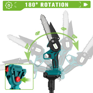 Barra Guía Eficiente de 6 Pulgadas – Con una placa guía de 6 pulgadas y un diámetro de corte de 25cm, esta sierra de pértiga es perfecta para mantener tu jardín, cortando ramas con facilidad.