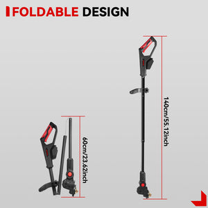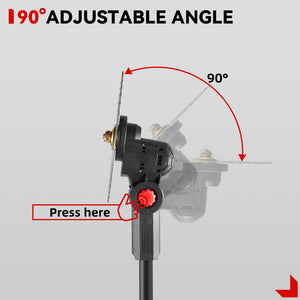 La cabeza de corte ajustable te permite afinar el ángulo de corte para bordes, pendientes o rincones estrechos. Además, el eje plegable de 140 cm reduce el tamaño de almacenamiento y embalaje, facilitando su almacenamiento y transporte. -