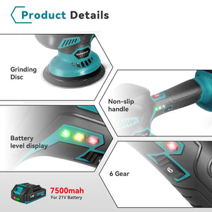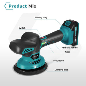 Pad de 150mm para Máxima Cobertura: Este pulidor de coche inalámbrico está equipado con un generoso pad de pulido de 150mm, proporcionando una cobertura de superficie eficiente para un acabado suave y de alta calidad en todos los tipos de pintura, lo que lo convierte en la elección ideal tanto para profesionales como para entusiastas del bricolaje.