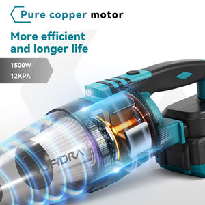 • Motor Potente de 1500W con Succión de 12Kpa – Limpie profundamente su hogar o automóvil sin esfuerzo. El motor de alta eficiencia proporciona una fuerte potencia de succión para abordar el polvo, el pelo de mascotas y los escombros en pisos, alfombras y interiores de automóviles.