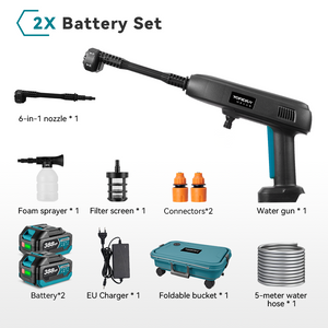 ¿No hay grifo cerca? No hay problema. El cubo plegable de 22L incluido hace de esta una solución de hidrolavadora de alta presión completamente portátil—perfecta para propietarios de coches, campistas y jardineros. -