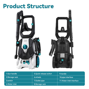 Limpiador de Alta Presión NewBeny 250 Bar - Lavadora Eléctrica Portátil para Coches 2500W