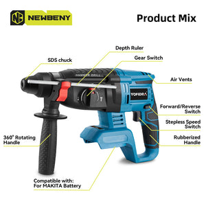 - Taladro de Percusión Velocidad Variable & Control de Impacto: Ajusta la velocidad y la configuración de impacto para un rendimiento de perforación óptimo en diferentes materiales.