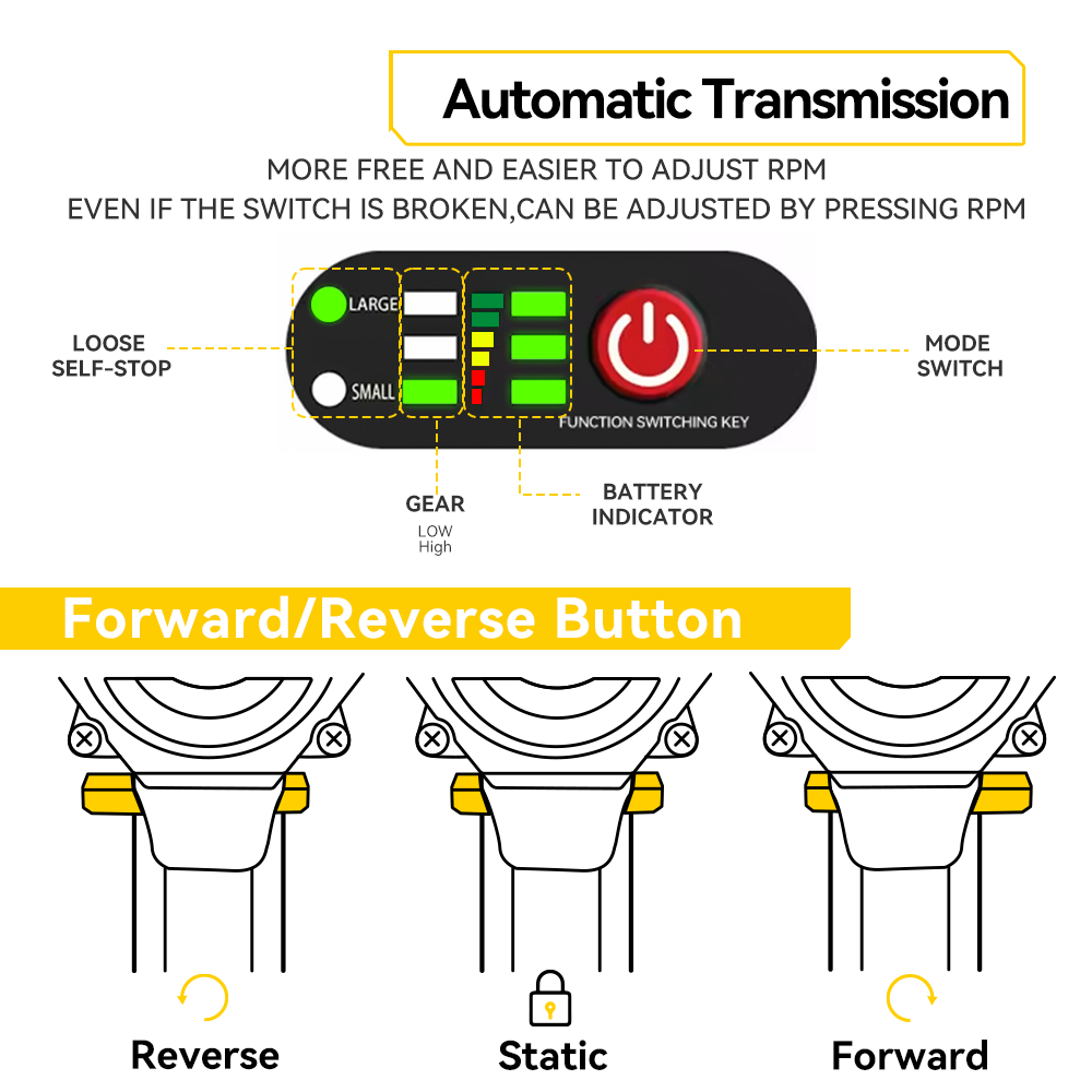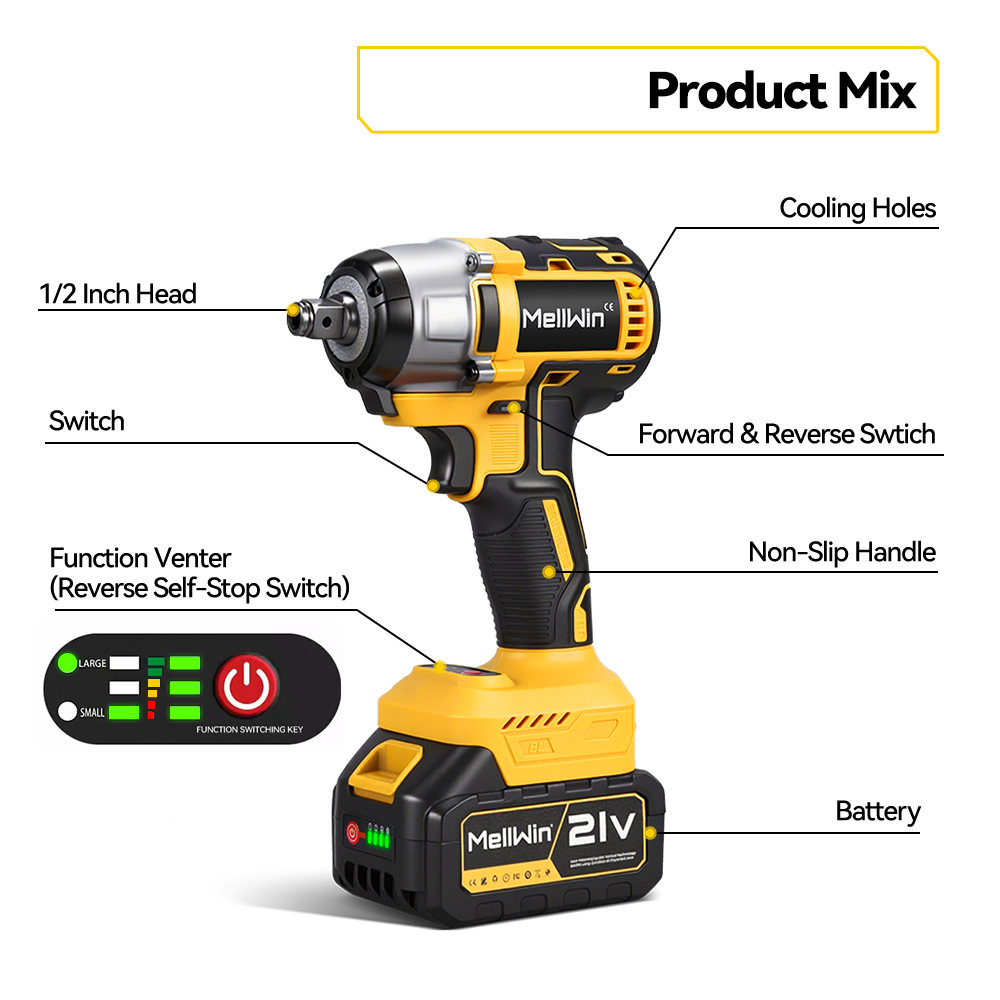 Équipé d'un moteur sans balais longue durée pour une efficacité accrue, une réduction de la chaleur et une durée de vie prolongée. Offre 2 vitesses avant et 2 vitesses arrière, dont un mode marche arrière avec arrêt automatique pour éviter tout desserrage excessif.