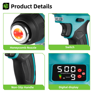 Pistolet à air chaud électrique NewBeny 2000 W, 9 vitesses, avec écran LED, pour batterie Makita 18 V