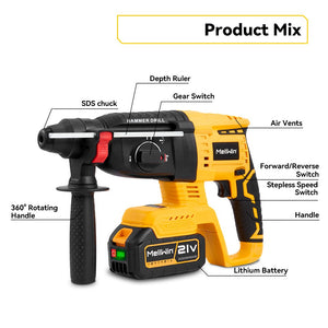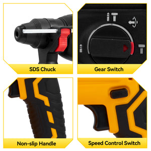 - Mode marteau électrique : plus efficace que les marteaux électriques à courant alternatif.