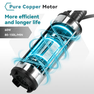 Équipé d'un moteur en cuivre pur pour une performance stable et une durée de vie prolongée. Offre une forte aspiration et un pompage efficace sans surchauffe — idéal pour une utilisation domestique et agricole.