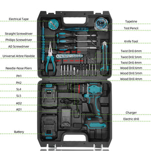 NewBeny Kit perceuse sans fil - 2 batteries, 30 accessoires, chargeur et étui