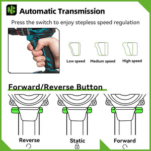 Avec un couple maximal de 80 N·m et deux vitesses (0–1 500 / 0–3 000 tr/min), vous pouvez alterner entre le perçage à grande vitesse et le vissage à couple élevé, idéal pour le bois, le métal, le plastique et la maçonnerie.