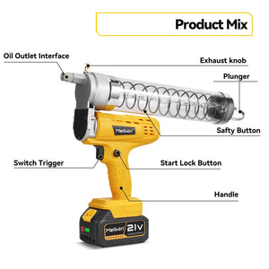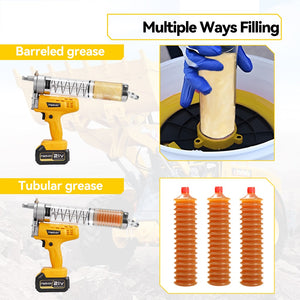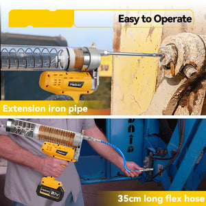 Pratique du sans fil et longue durée de fonctionnement – Alimenté par un moteur haute performance de 560 W et deux batteries rechargeables, ce pistolet à graisse sans fil vous permet de travailler sans tuyaux emmêlés ni recharges fréquentes.