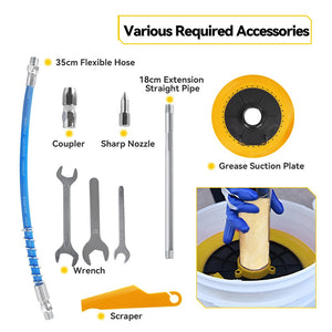 Rapide et Débit de graisse constant : jusqu'à 140 g/min pour une lubrification rapide et précise, ce qui vous permet de réduire les temps d'arrêt et d'améliorer l'efficacité du travail sur le terrain ou en atelier.