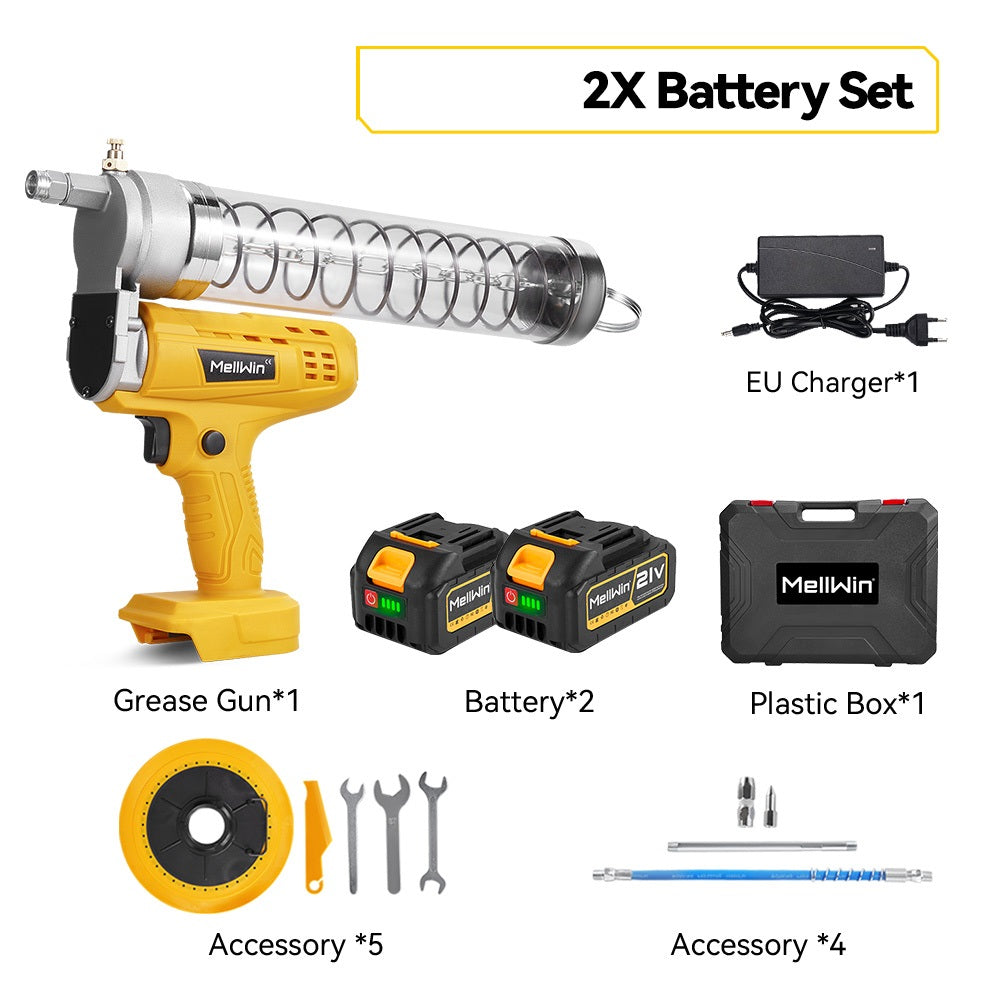 Pistolet à graisse sans fil haute pression 12 000 psi avec 2 batteries et chargeur