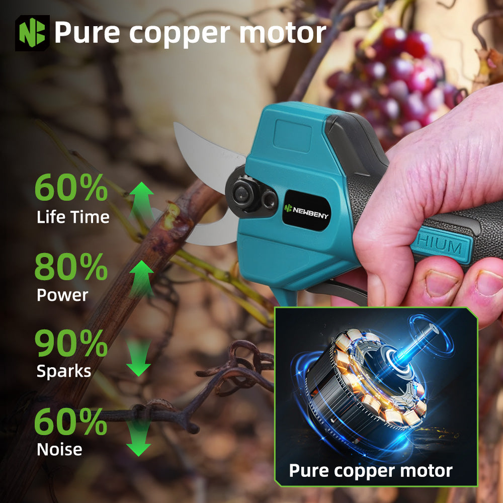 Sécateur sans fil NewBeny 30 mm, 2 vitesses, compatible avec une rallonge