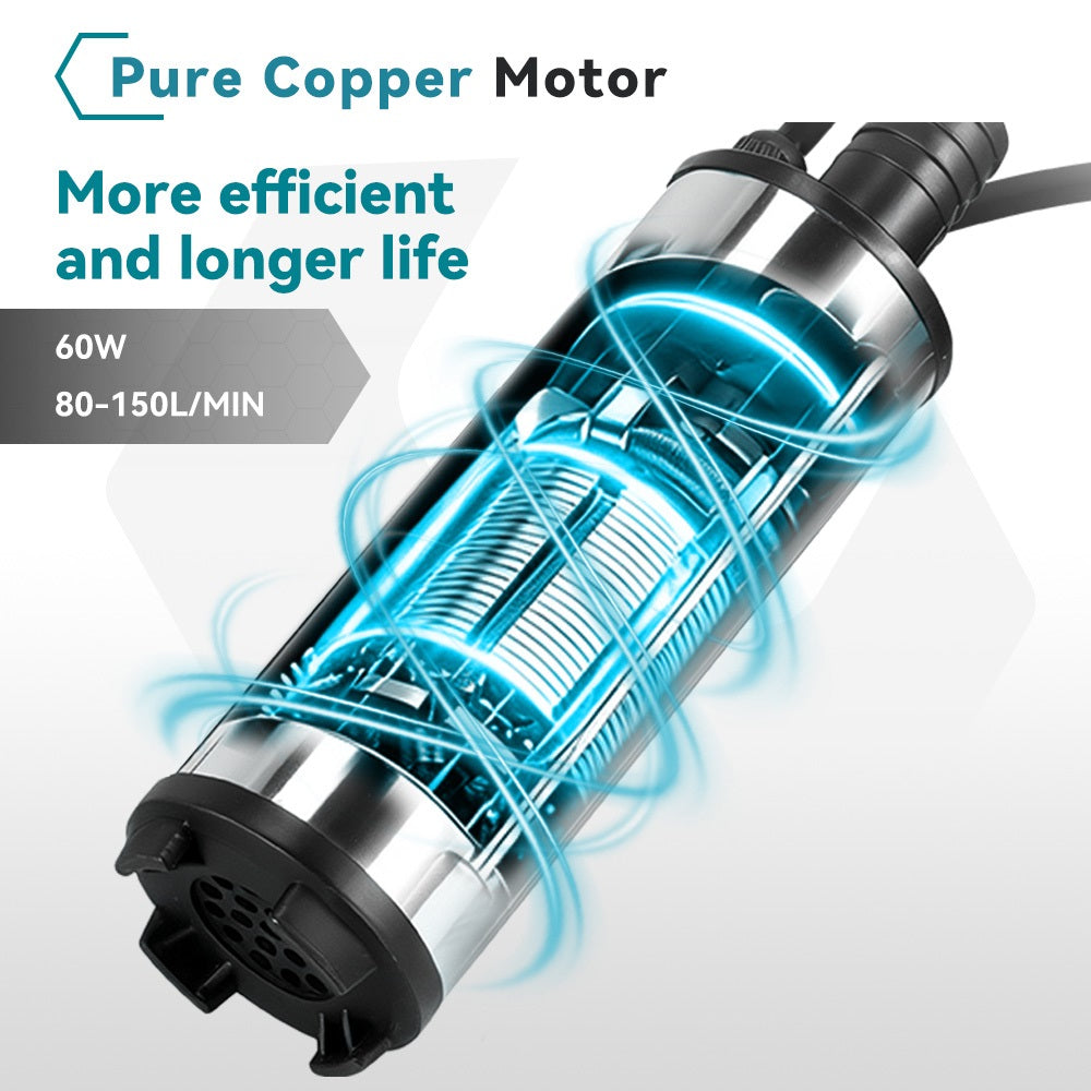 Équipé d'un moteur en cuivre pur pour une performance stable et une durée de vie prolongée. Offre une forte aspiration et un pompage efficace sans surchauffe — idéal pour une utilisation domestique et agricole.