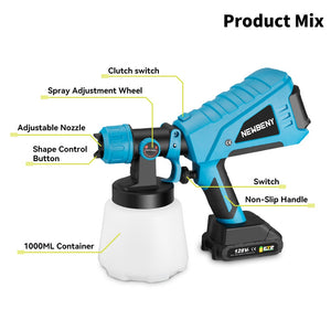 Pulvérisateur de peinture sans fil NewBeny 1000 ml pour batterie Makita 18 V