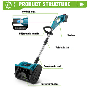 NewBeny 12 Inch Brushless Cordless Snow Shovel Foldable with 2 Batteries & Charger