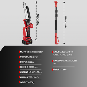 Featuring a robust 4900W brushless motor, this pole chainsaw delivers unmatched efficiency and durability for heavy-duty pruning. With a 0-49,000 RPM speed range and 11m/s chain speed, it ensures rapid, smooth cutting of thick branches, ideal for professional arborists and demanding garden maintenance.