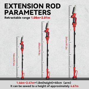The 3-section extendable pole offers 3 customizable lengths (108/157/201cm), enabling safe trimming of high branches without ladders. Lightweight yet sturdy, it prioritizes user safety for residential tree care and commercial forestry applications.