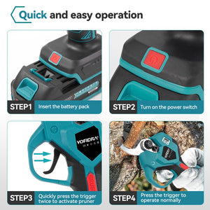 The pruner’s lightweight, compact design allows for easy handling, and the convenient battery replacement makes maintenance simple. With safety features built-in, you can trust this tool for reliable and secure performance.