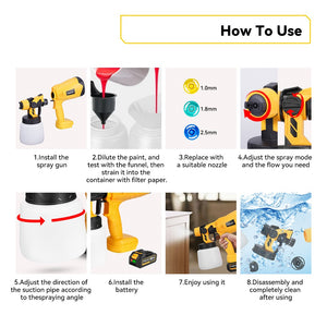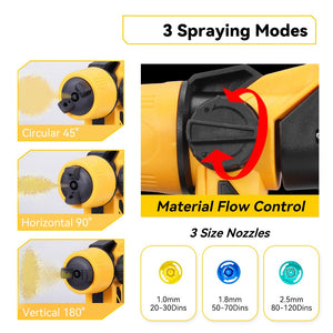 Ideal for painting walls, ceilings, fences, furniture, doors, cabinets, and more. This cordless electric paint sprayer for home improvement is perfect for DIYers, remodelers, and hobbyists.