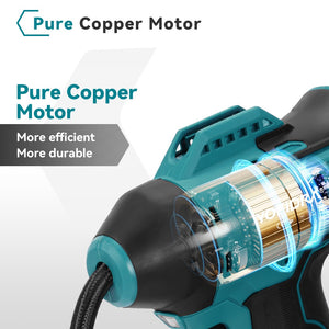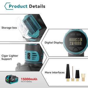 Cordless Convenience + 12V Backup: Use it wirelessly with an 18V battery, or connect to your vehicle’s 12V cigarette lighter for backup power using the 5-meter cord. (Note: 12V mode offers lower inflation efficiency than battery mode.)