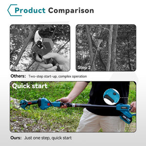 Both tools are equipped with advanced brushless motors, delivering powerful, efficient, and reliable performance. The 8-inch chainsaw's high-torque motor ensures rapid cutting speeds for tough jobs, while the 28mm pruner’s motor offers fast, clean cuts, making it perfect for gardening and pruning tasks. The pruner also features a quick-start mechanism, with the option to operate it on the extendable high-branch pole for added convenience.