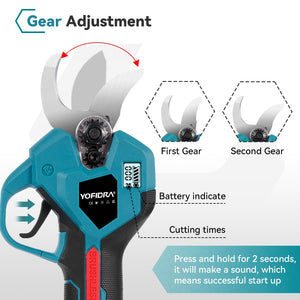 Both tools feature user-friendly designs to enhance efficiency. The chainsaw includes an automatic oiling system for smooth operation and a digital battery indicator to manage work sessions effectively. The pruner offers two selectable gears and a large-capacity battery, perfect for various gardening and farming applications.