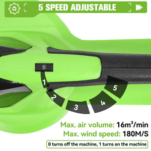 Generates a massive 16m³/min air volume and wind speeds up to 180M/S, powerful enough to clear heavy leaves, snow, and debris with ease.