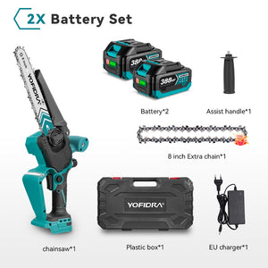 NewBeny 8 Inch Brushless Cordless Chainsaw With Extra Chains [2 Batteries and Charger Included]
