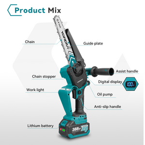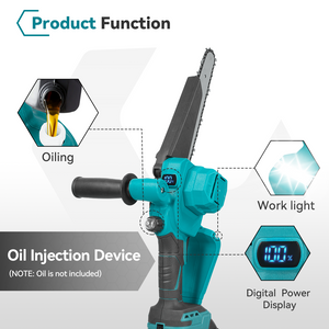Stay in control with a digital battery display, built-in work light for better visibility, and an oil reservoir for smooth operation. Wide hand guard and ergonomic handle improve safety and comfort. -