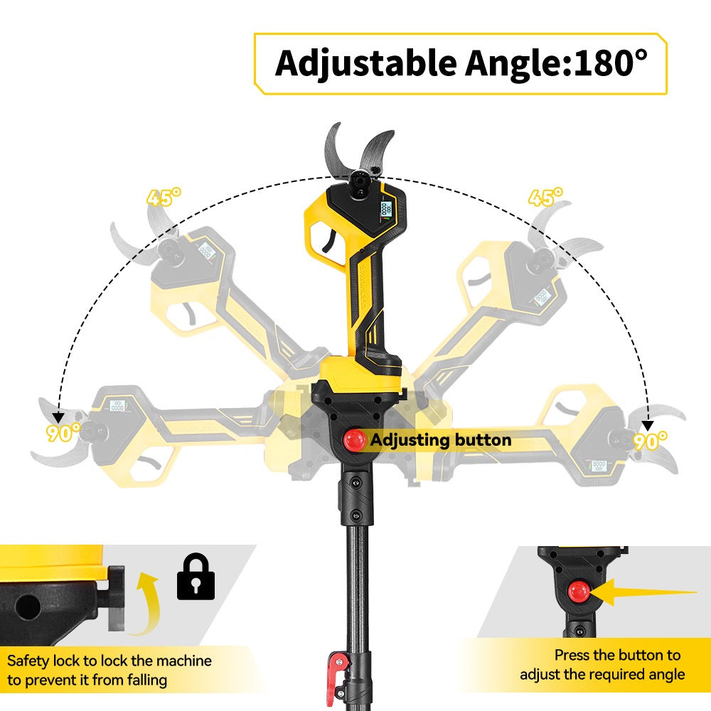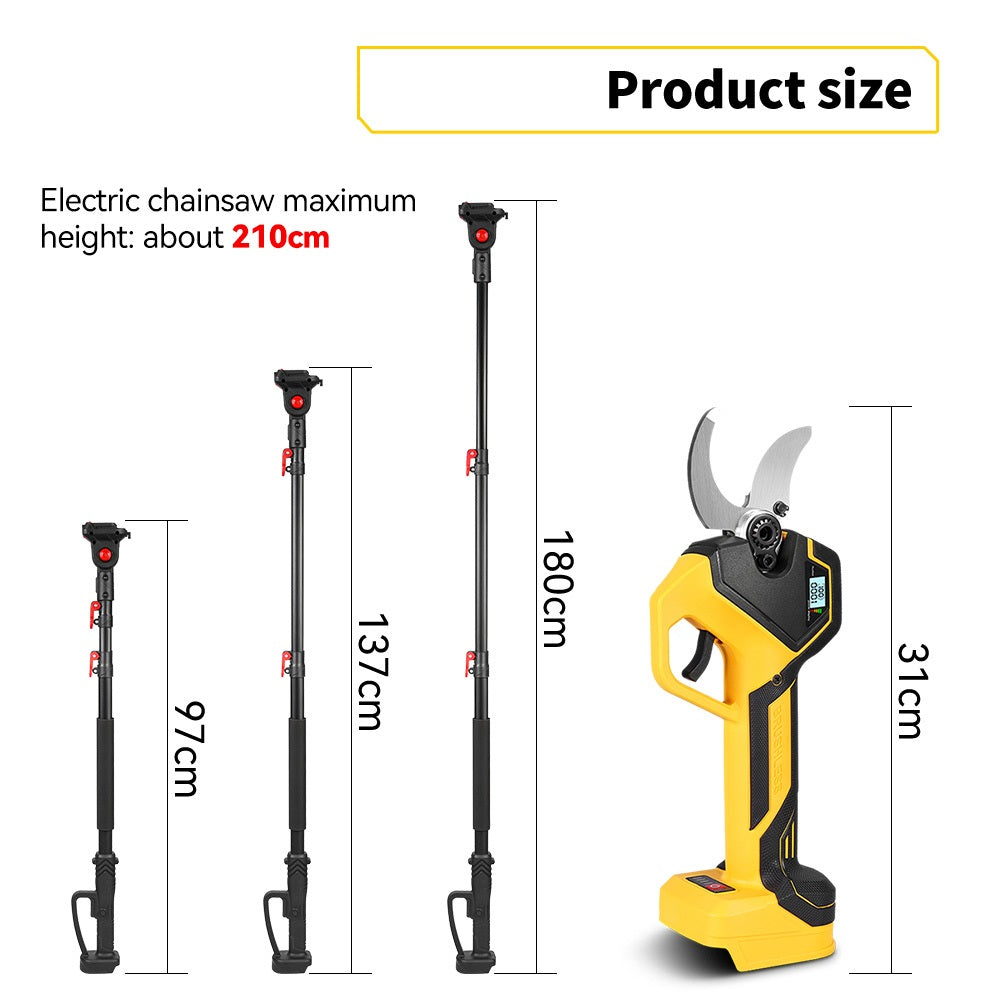 Use it as a handheld cordless pruning shears or attach the 1.8m extension pole to easily reach high branches. Perfect for garden pruning, tree trimming, and overhead cutting without climbing ladders.