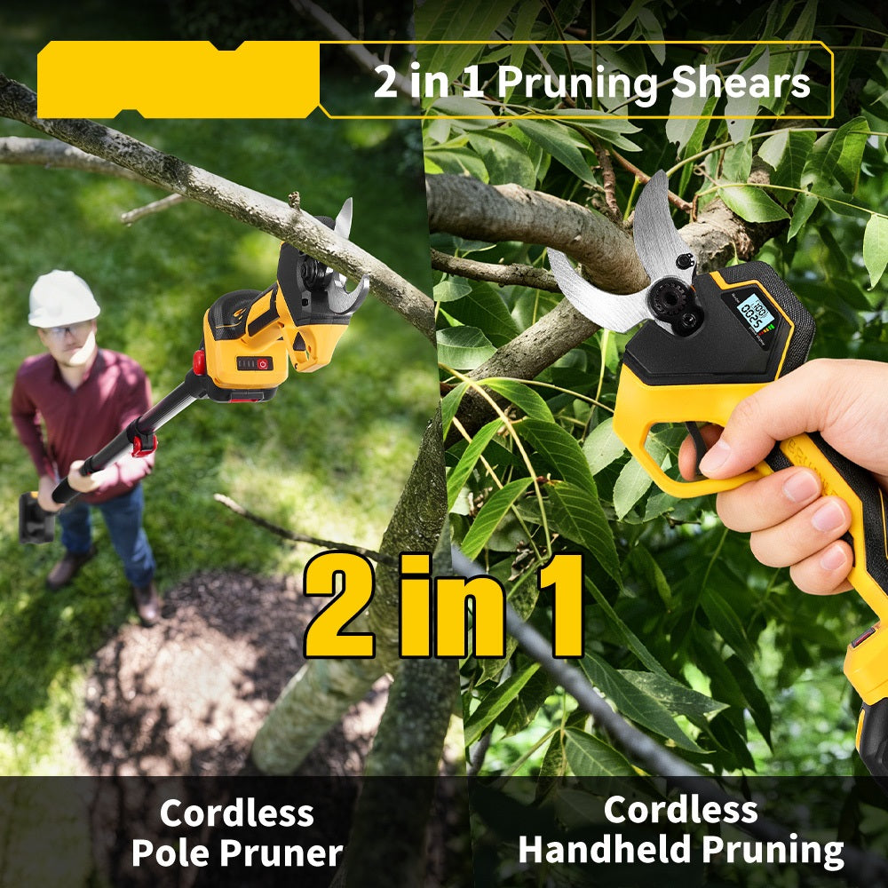 NewBeny 2-in-1 50mm Cordless Pruning Shears with 1.8m Extension Pole [2 Batteries and a Charger Included]