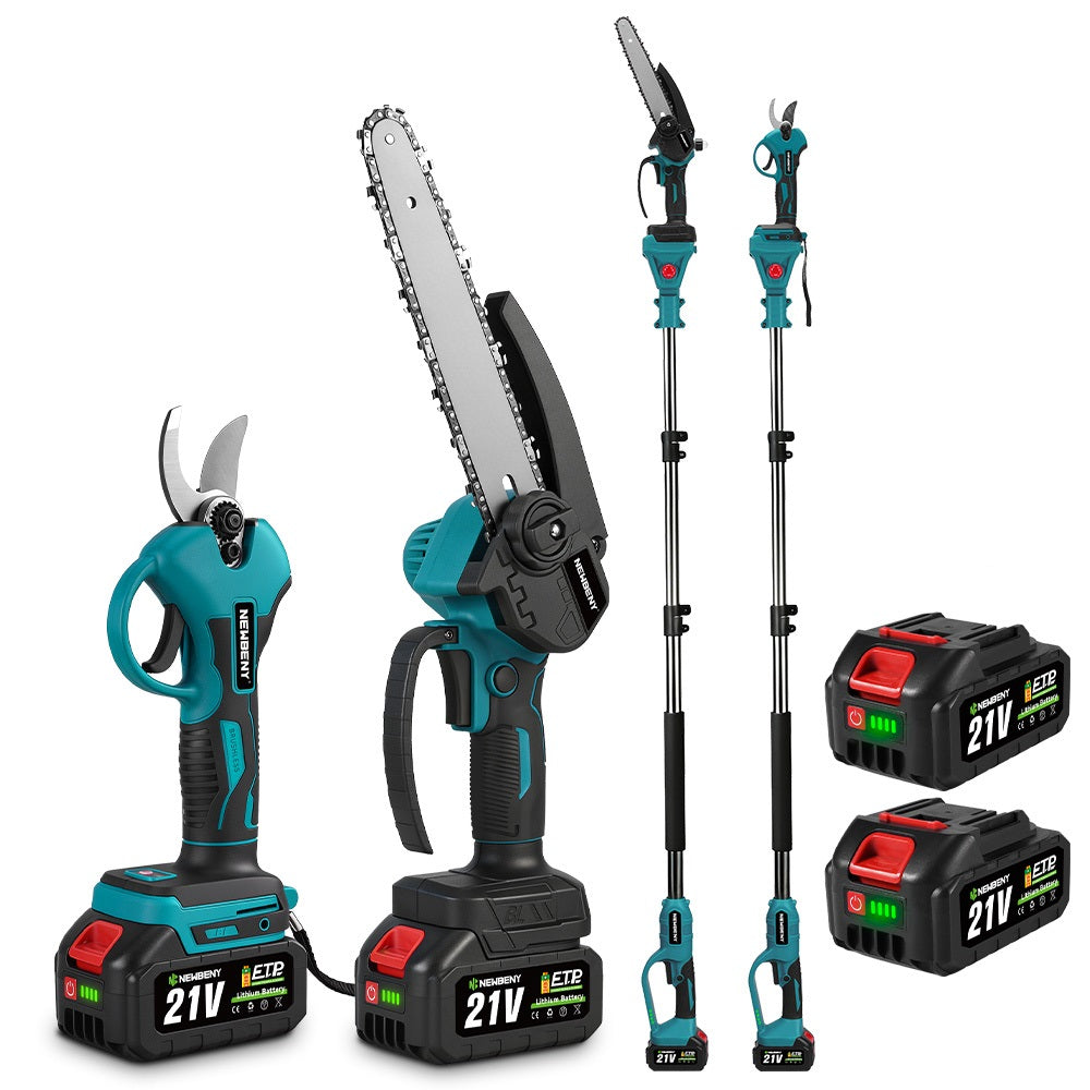 Home NewBeny Cordless Tree Trimming Tool Set – 8" Chainsaw, 30mm Pruning Shears & 208cm Telescopic Pole, 2 Batteries with charger