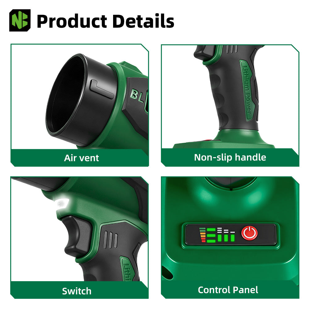 Equipped with a high-performance brushless motor, delivering up to 650 m/s air speed and 0.5–1 kg blowing force, making light work of stubborn dust, sawdust, and outdoor debris.