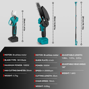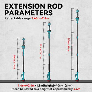 Versatile Pruning & Cutting: The 6” Cordless Chainsaw and 25mm Pruning Shears come with a 2m high pole, allowing you to trim high branches with ease.