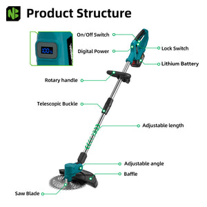 Home NewBeny 9 Inch Brushless Cordless Grass Trimmer Digital Power [2 batteries and a charger included]